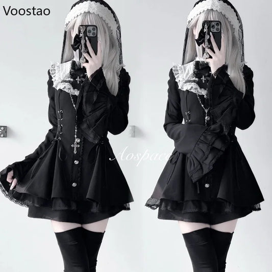 Bow Dress & Shorts Set – Punk Flare Sleeve Mini Outfit