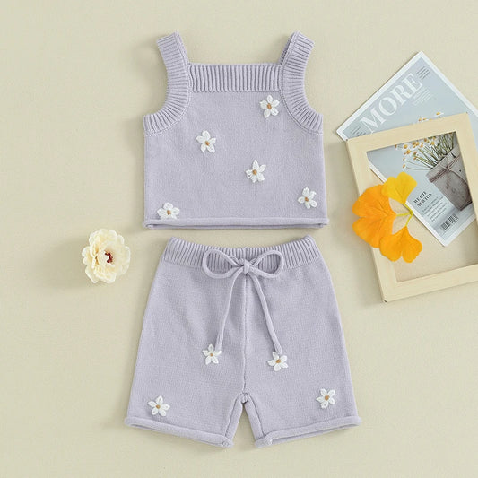 FOCUSNORM Baby Girl Knitted Clothes Set – Vest & Shorts 0-3Y