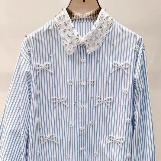 High-End Embroidered Flare Shirt – Women’s Loose Fit Chic Blouse