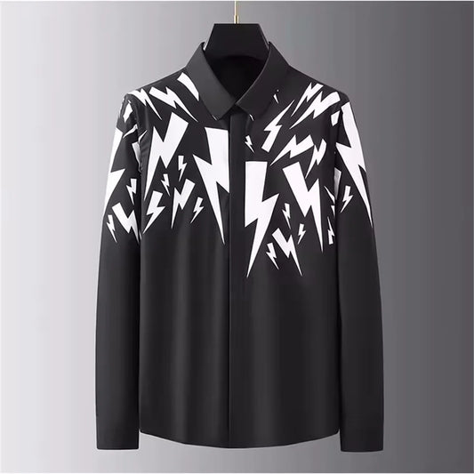 Men’s Luxury Printed Long Sleeve Shirt – Streetwear Style, Plus Size
