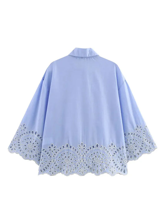 TRAF 2025 Embroidered Hollow Shirt – Women’s Spring Top
