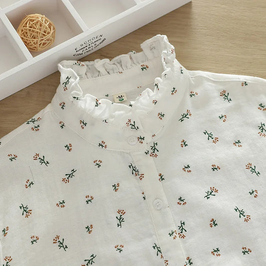 Women’s Ruffled Floral Cotton Shirt – Autumn Loose Fit