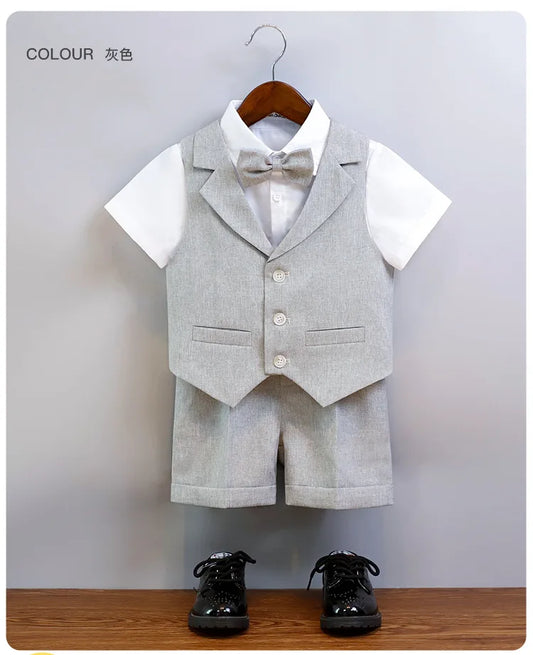 JUCPKID Boys' Formal Vest & Shorts Set – Summer Suit for Wedding.